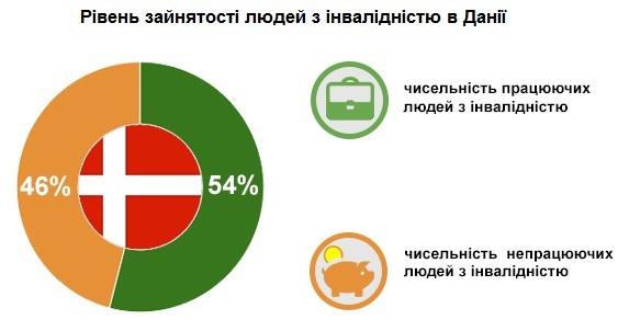 Модель працевлаштування громадян з інвалідністю в Данії дає можливість людям з особливими потребами використовувати систему пошуку роботи на рівні з іншими шукачами в повному обсязі. За необхідності їм надається додаткова підтримка. Та особливість, яка відрізняє датський досвід працевлаштування людей з інвалідністю від інших європейських країн, полягає в створенні системи гнучких робочих місць. Вони регулюються законом про активні заходи щодо працевлаштування, відповідно до якого від 50 до 65% заробітної плати виплачується за рахунок державного бюджету.