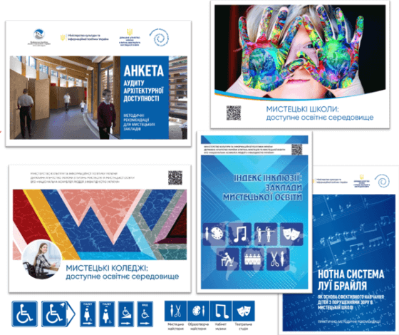 Серед іншого були презентовані 5 навчально-методичних посібників, розроблених в межах пілоту протягом 2020 – 2021 років на допомогу закладам мистецької освіти у впровадженні інклюзивного навчання.