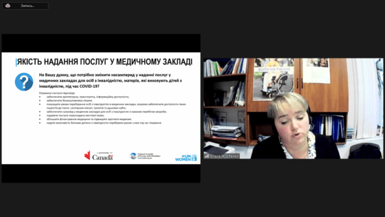 Представниця ООН Жінки в Україні Еріка Квапілова зазначила, що «дослідження/ опитування важливе не тільки тому, що воно спрямоване на вивчення ситуації людей з інвалідністю, жінок, дітей з інвалідністю, в ньому також йдеться про перехрестя проблем, які виникають в контексті Covid – 19 і децентралізації. Результати дуже важливі, вони демонструють суттєві складнощі, з якими стикаються жінки з інвалідністю та піклувальники».