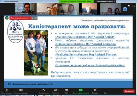 Учасники вебінару дізнались про непростий шлях створення Центру каністерапії для дітей та дорослих у Запоріжжі, про підготовку та етапи навчання для кожного з члена команди.