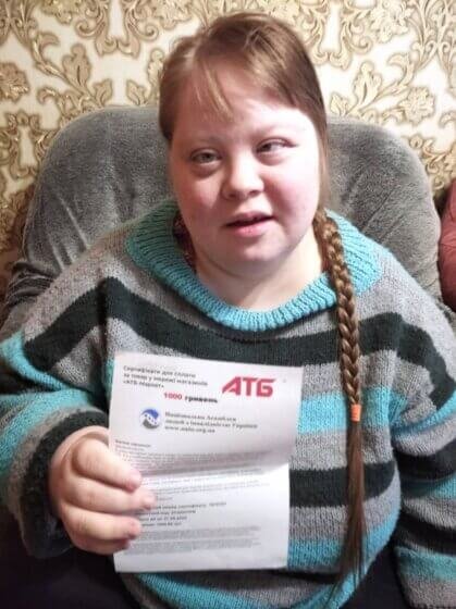 На Вінниччині для жінок з інвалідністю, матерям дітей та дорослих недієздатних осіб з інвалідністю з дитинства Асоціація захисту прав та допомоги людям з інвалідністю «Відкриті серця» надає допомогу та підтримку, підвищує їх компетенції, стресостійкість. А у вересні в мережі магазинів «АТБ-Маркет» Асоціація придбала 60 сертифікатів на продукти харчування та 30 сертифікатів на засоби гігієни для жінок з інвалідністю. Кожен сертифікат вартістю 1000 гривень.